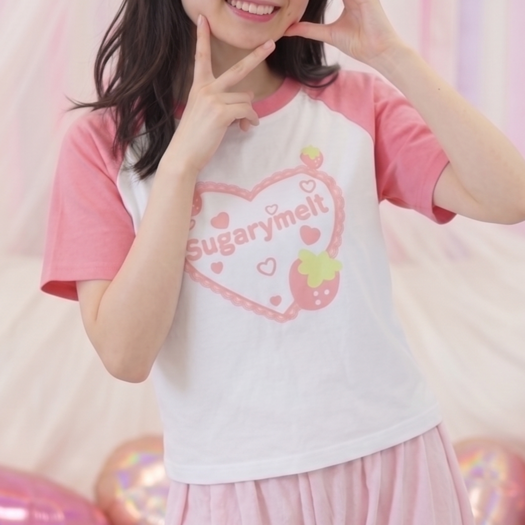 Add a touch of Japanese "Kawaii" culture to your daily look! This adorable raglan tee features our signature Sugarymelt heart graphic, accented with sweet strawberries and lace-inspired detailing. Perfectly blending Y2K nostalgia with the modern Coquette aesthetic, it’s the ultimate piece for anyone who loves a soft, feminine vibe.