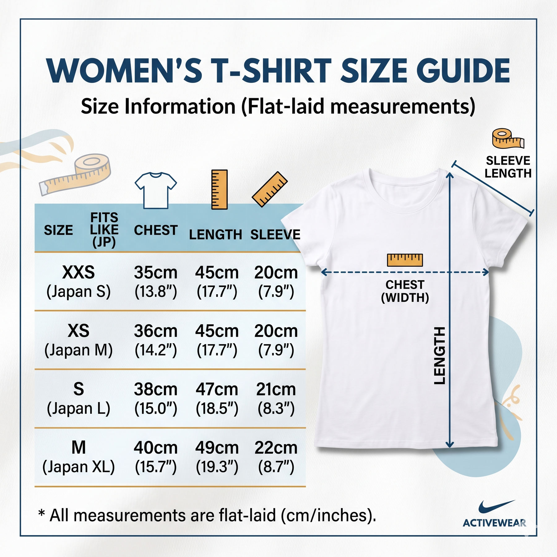 ・Size XS (Fits like Japan S): Chest 35cm (13.8"), Length 45cm (17.7"), Sleeve 20cm (7.9")